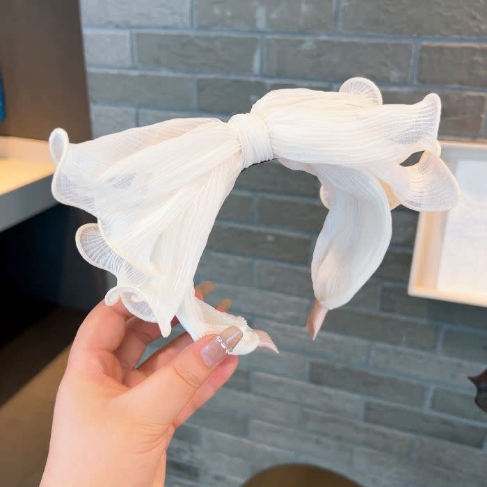 HA804 Oversize pleated bow headband in Cream