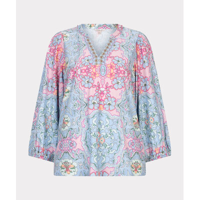 Esqualo 30014 Blue Multi V/Neck Print Top